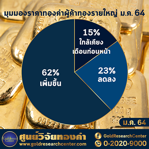 สรุปกลุ่มตัวอย่างที่เป็นผู้ประกอบกิจการค้าทองคำรายใหญ่และผู้ประกอบกิจการนายหน้าซื้อขายสัญญาซื้อขายล่วงหน้าที่อ้างอิงกับราคาทองคำจำนวน 13 ตัวอย่าง โดยส่วนใหญ่เชื่อว่าราคาทองคำในเดือน มกราคม 2564 จะเพิ่มขึ้น มีจำนวน 8 ราย และคาดว่าจะลดลง มีจำนวน 3 ราย ส่วนที่คาดว่าจะใกล้เคียงกับราคาทองคำในเดือน ธันวาคม 2563 มีจำนวน 2 ราย