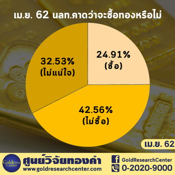 จากกลุ่มตัวอย่างจำนวน 289 ตัวอย่าง พบว่าร้อยละ 42.56 ยังไม่ซื้อทองคำในช่วงเดือน เมษายน 2562 ขณะที่ร้อยละ 32.53 ไม่แน่ใจว่าจะซื้อทองคำหรือไม่ และร้อยละ 24.91 คาดว่าจะซื้อทองคำในเดือนนี้