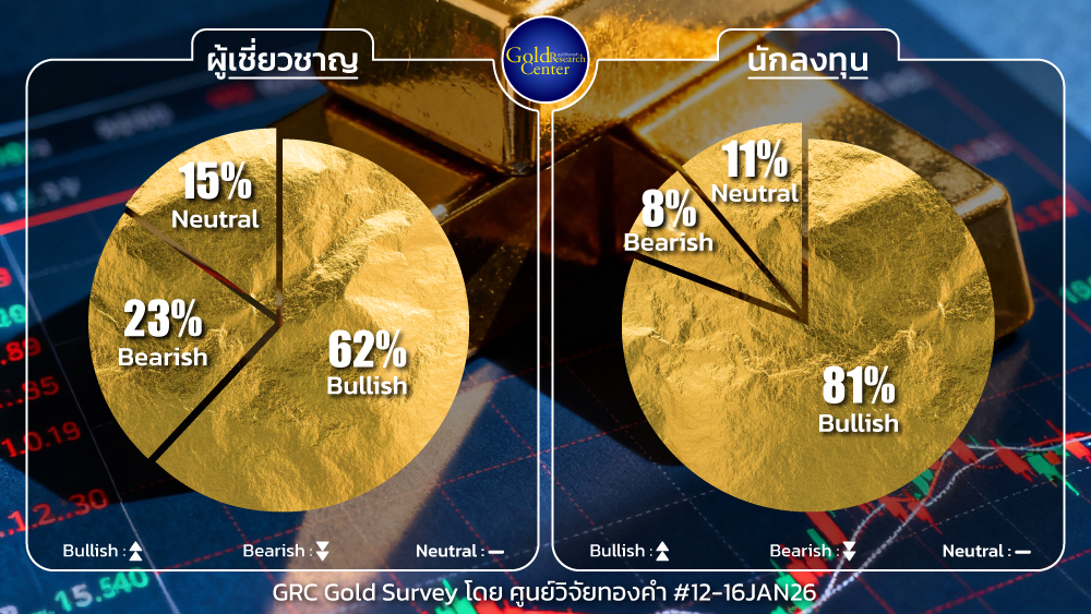 ผลสำรวจมุมมองต่อทิศทางราคาทองคำในประเทศรายสัปดาห์ระหว่างวันที่ 12-16 ม.ค.69 จากการสำรวจ GRC Gold Survey โดย ศูนย์วิจัยทองคำ