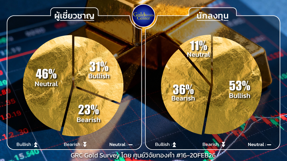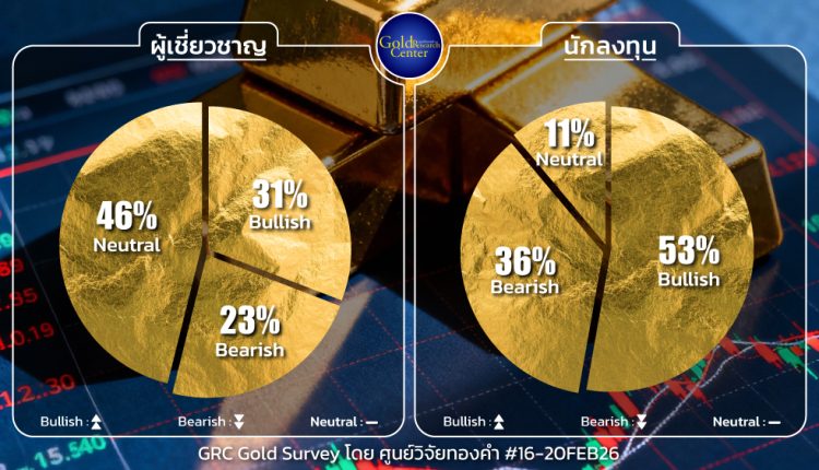 ผลสำรวจมุมมองต่อทิศทางราคาทองคำในประเทศรายสัปดาห์ระหว่างวันที่ 16-20 ก.พ.2569 จากการสำรวจ GRC Gold Survey โดย ศูนย์วิจัยทองคำ