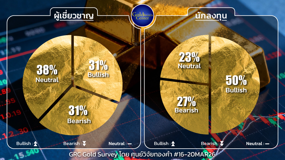 ผลสำรวจมุมมองต่อทิศทางราคาทองคำในประเทศรายสัปดาห์ระหว่างวันที่ 16-20 มี.ค.2569 จากการสำรวจ GRC Gold Survey โดย ศูนย์วิจัยทองคำ