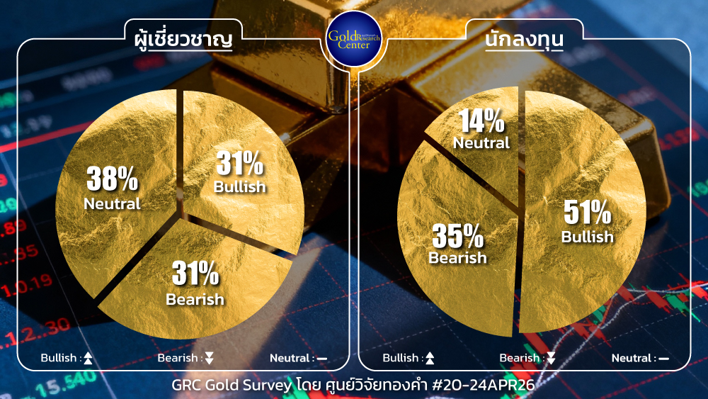 ผลสำรวจมุมมองต่อทิศทางราคาทองคำในประเทศรายสัปดาห์ระหว่างวันที่ 20-24 เม.ย.2569 จากการสำรวจ GRC Gold Survey โดย ศูนย์วิจัยทองคำ