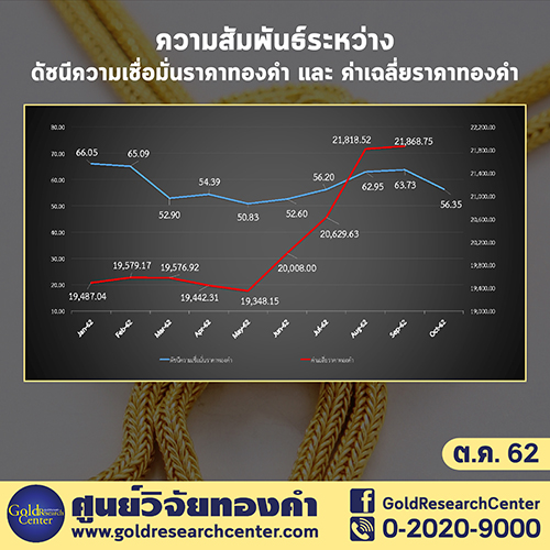 ดร.พิบูลย์ฤทธิ์ วิริยะผล  แถลงดัชนีความเชื่อมั่นราคาทองคำประจำเดือน ตุลาคม 2562 ปรับลดลงจากเมื่อเดือน กันยายน ที่ผ่านมา จากระดับ 63.73 จุด มาอยู่ที่ระดับ 56.35 จุด ลดลง 7.38 จุด หรือคิดเป็น 11.61% โดยปัจจัยที่ทำให้ดัชนีฯ ปรับลดลงมานั้น คาดว่าจะมีปัจจัยมาจากกระแสเงินทุนไหลเข้าสู่สินทรัพย์เสี่ยงมากขึ้น ทิศทางนโยบายทางการเงินของธนาคารกลางสหรัฐฯ (FED) การแข็งค่าของค่าเงินบาท และ แรงขายเก็งกำไรของกองทุน ตามลำดับ