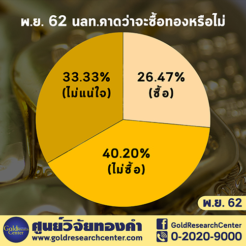 จากกลุ่มตัวอย่างจำนวน 306 ตัวอย่าง พบว่าร้อยละ 40.20 จะไม่ซื้อทองคำในช่วงเดือนนี้ ขณะที่ร้อยละ 33.33 ไม่แน่ใจว่าจะซื้อทองคำหรือไม่ และร้อยละ 26.47 คาดว่าจะซื้อทองคำ