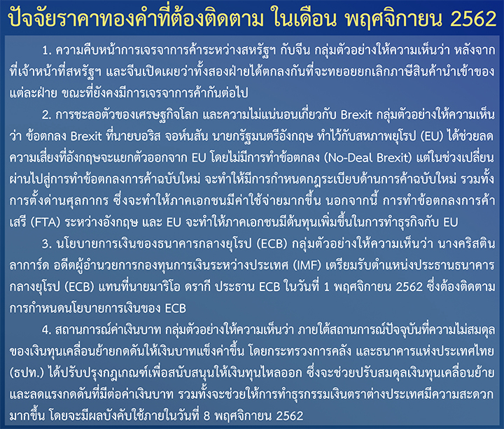 Download รายงานศูนย์วิจัยทองคำประจำเดือน พฤศจิกายน 2562 ฉบับเต็มได้ที่นี่